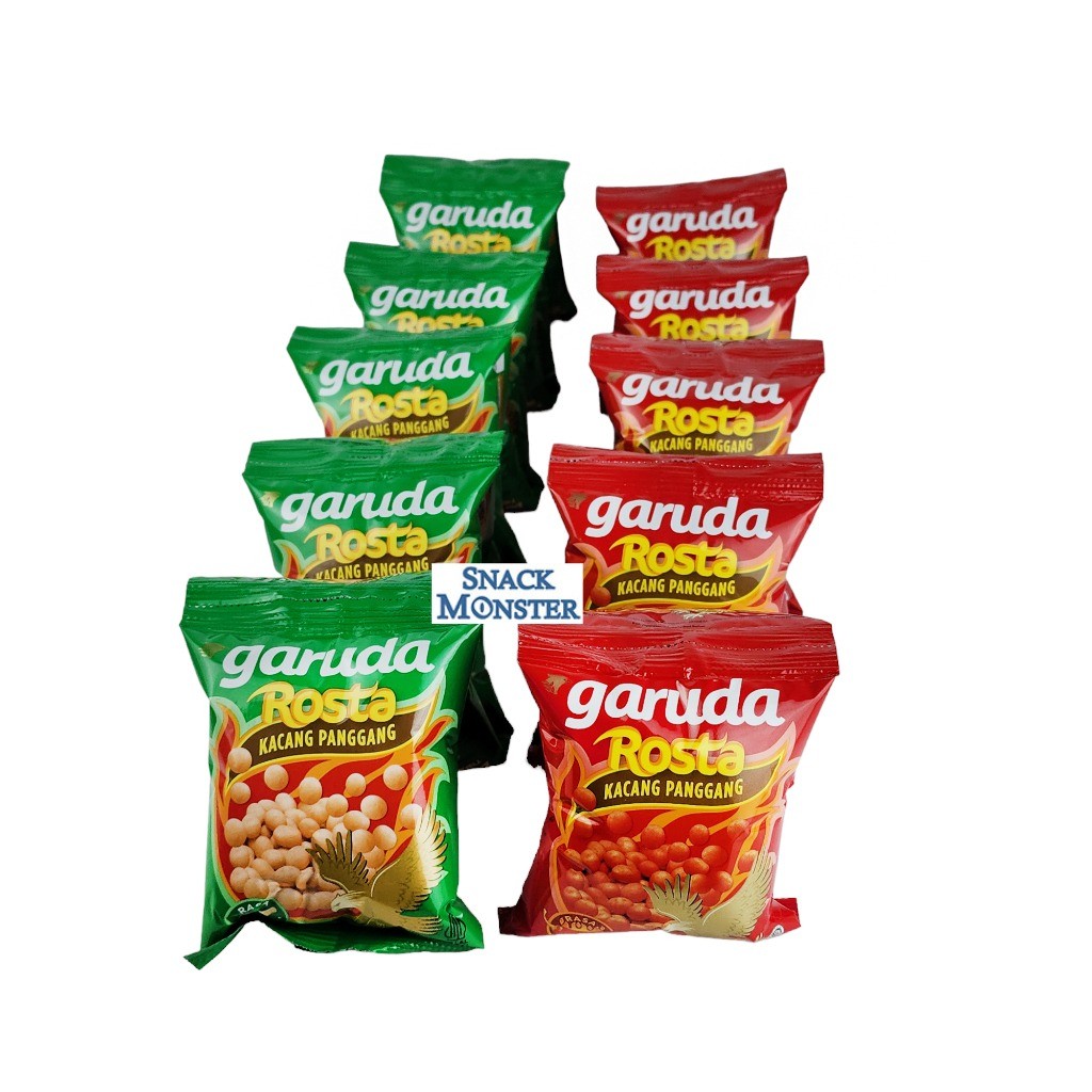 ROSTA adalah kacang panggang persembahan Garuda Food. Kacang Garuda ini dihasilkan dari kacang tanah pilihan yang garing dan padat kemudian dibalut oleh tepung terigu dan dipanggang dengan minyak nabati yang sehat, tidak digoreng. Dijual per renceng isi 10 bungkus per renceng dengan netto 12 gram per bungkusnya,