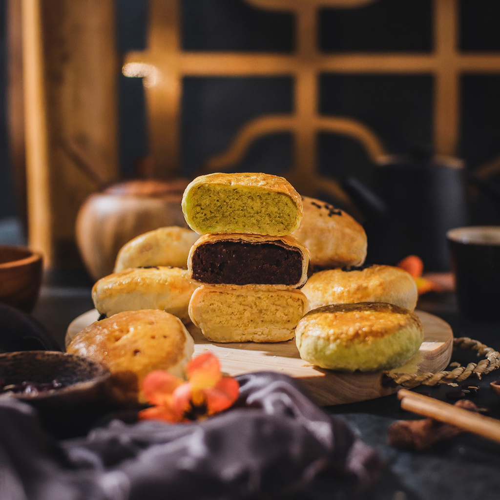 Terbuat dari kacang hijau dengan rasa original, pandan dan jeruk. Pia ini diproduksi setiap hari dan fresh from the oven. Tahan 3 minggu.