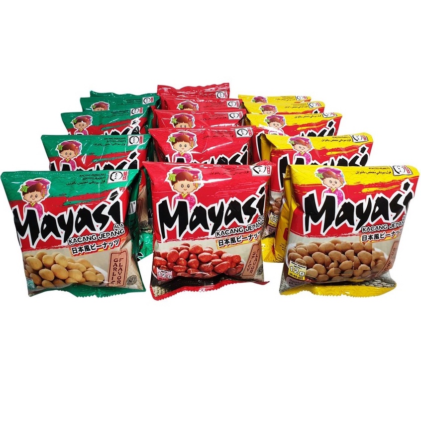 Snack kacang dari Mayasi yang ideal untuk menjadi teman saat santai atau kumpul seru. Dibuat memadukan kacang tanah, tepung, dan bumbu pilihan, serta diproses secara higienis dengan cara dipanggang untuk menghasilkan kacang ala Jepang yang enak.