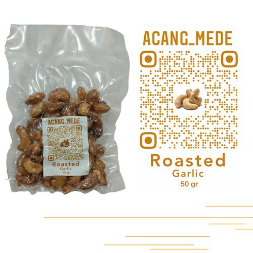 Kacang mede merupakan makanan favorite semua orang. Kacang mede kami berasal dari Sulawesi yang merupakan salah satu penghasil mede terbaik di dunia. Yang diolah dengan cara dipanggang serta dikemas dengan rapi dan divacum agar tetap gurih dan renyah karena diproses tanpa menggunakan bahan pengawet. Kacang mede Rasa Garlic mempunyai perpaduan rasa bawang dengan sedikit garam sehingga membuat kacang mede menjadi lebih enak dan gurih.