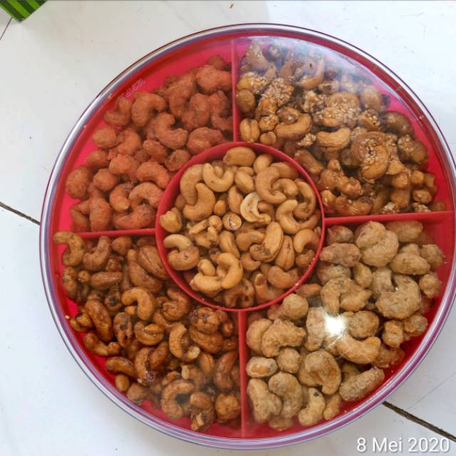 Kacang Mede matang varian rasa dalam satu tempat, Rasa Original, wijen, balado, crispy, madu...