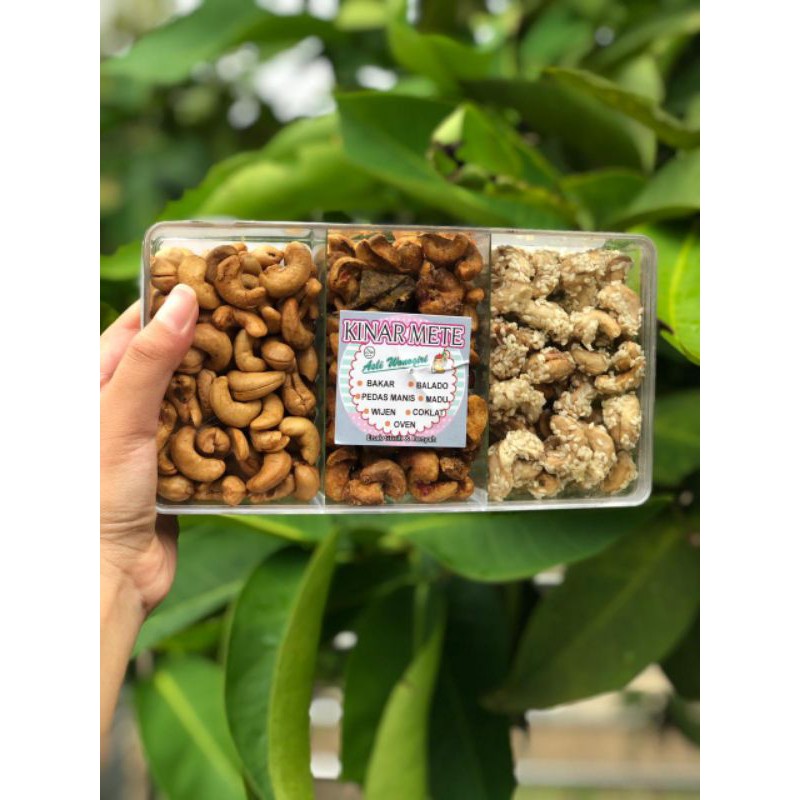 Kacang Mete dengan 3 rasa mix (balado/pedas manis/wijen/coklat/goreng/Oven/bakar)