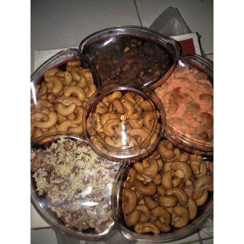 1kg kacang/Toples 6 sekat