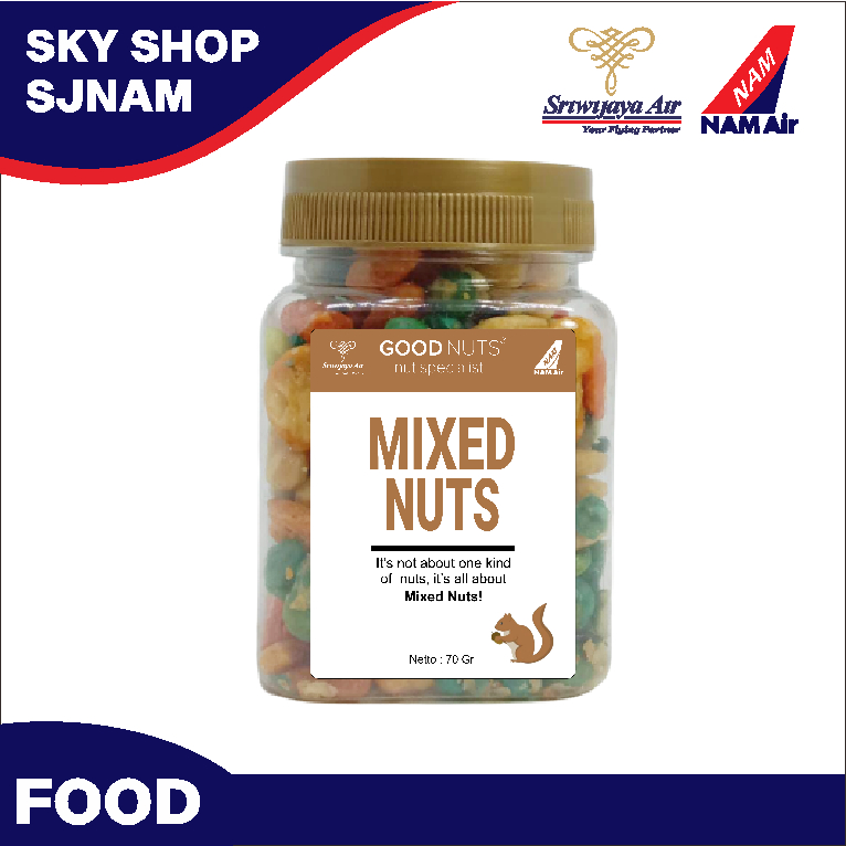 Mix Nuts merupakan campuran kacang tanah, kacang polo dan koro, dikombinasikan dengan daun jeruk sehingga menghasilkan aroma yang khas dan rasa yang unik. Makanan ringan ini sangat kaya akan nutrisi sehat seperti protein nabati dab serat yang tinggi.