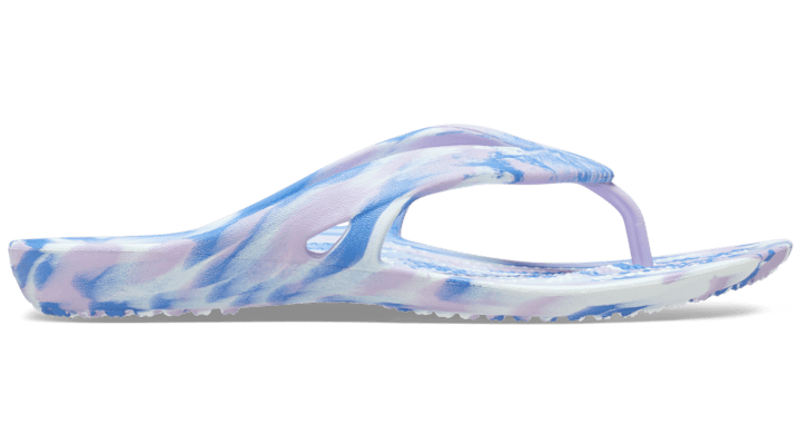 The Kadee II Flip you know and love now comes in a unique marbled treatment. While all marbled shoes have the same wavy look, no two shoes are exactly alike. Show off your creative spirit in this stylish and casual flip-flop. Incredibly light, incredibly cushy, easy to wear and dries quickly — perfect for anywhere you choose to get your flip on. Kadee II Marbled Flip Details: All of the comfort of the Classic Clog, now in a feminine flip Unique marbled treatment Soft TPU toe posts Iconic Crocs Comfort™: Lightweight. Flexible. 360-degree comfort.