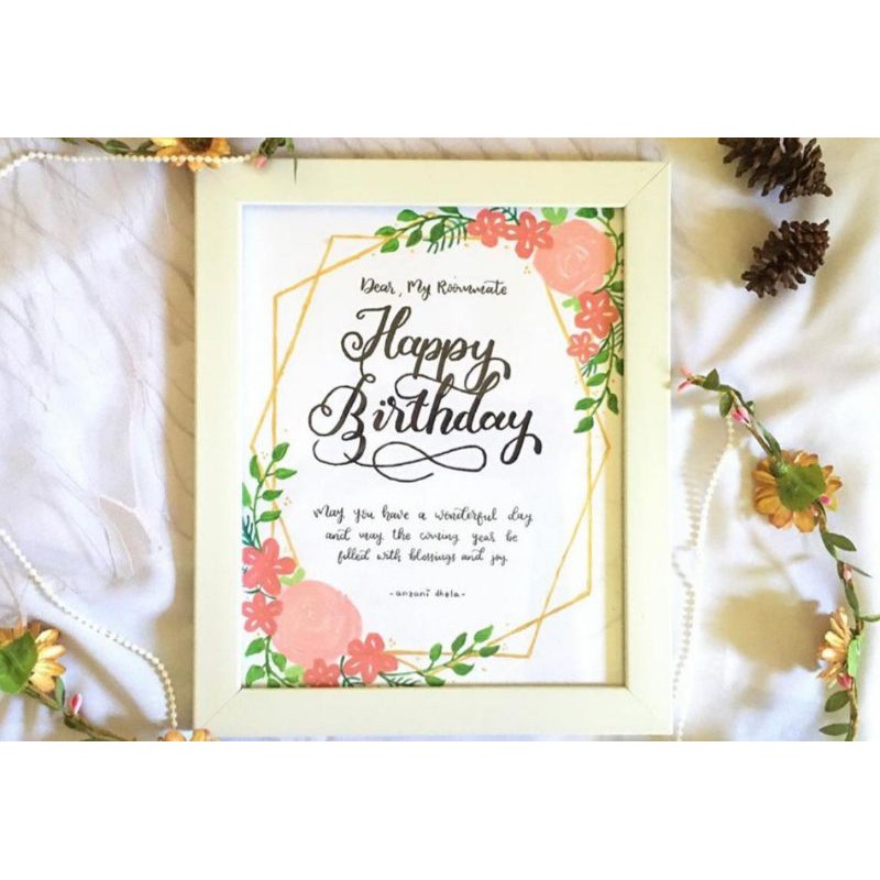 Sudah termasuk bingkai, packing kado dan pita, kartu ucapan.