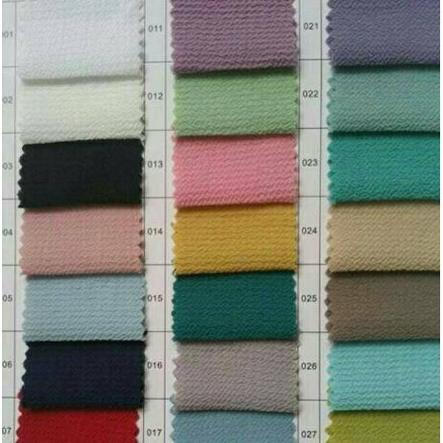 Karakteristik: tidak terawang (kecuali warna terang), permukaan crepe dan bergelombang, stretch