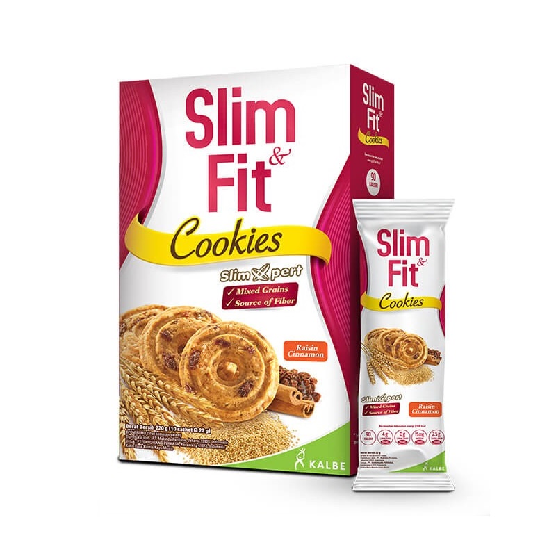 Quinoa merupakan World’s Most Popular Health Food dan terbukti efektif dalam penurunan berat badan karena mengandung protein dan serat yang tinggi sehingga memberikan rasa kenyang lebih lama. Slim & Fit Cookies merupakan solusi snack yang tepat untuk kita yang ingin menurunkan berat badan atau hanya ingin menjaganya. Kalori terkontrol, hanya 90 kkal per 3 keping (1 sachet). Tersedia dalam 2 varian yaitu cokelat dan raisin cinnamon.