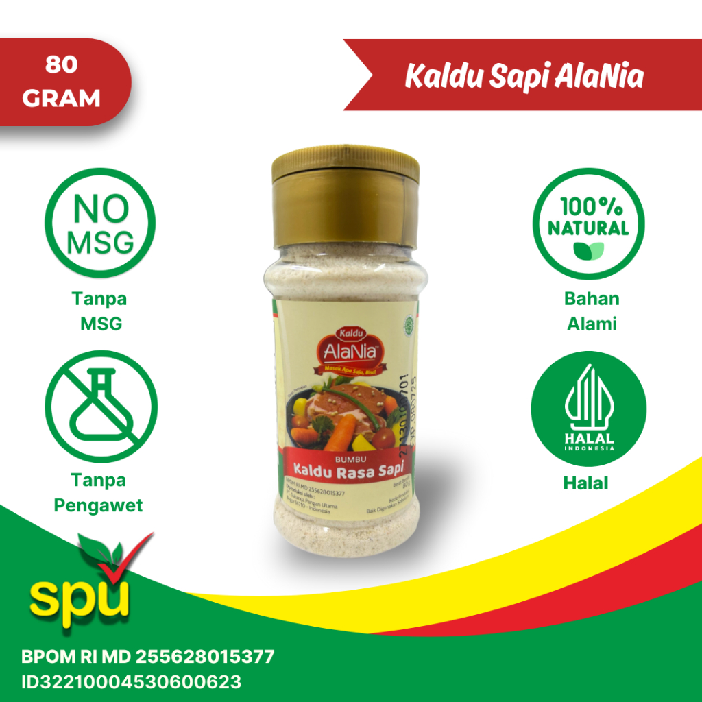 Kaldu Sapi AlaNia terbuat dari ekstrak lemak sapi dan rempah-rempah segar yang diproses dengan teknologi low temperature drying system.