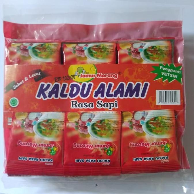 Kaldu Alami Cap Jamur Merang adalah salah satu jenis kaldu alami yang terbuat dari jamur merang yang berfungsi menggantikan MSG (Monosodium Glutamat) atau vetsin. Kaldu Alami Cap Jamur Merang terbuat dari bahan-bahan pilihan seperti ekstrak jamur merang, gula, garam, dan flavour (seasoning) yang menjadikan Kaldu Alami Cap Jamur Merang sehat dan lezat untuk dikonsumsi. Kaldu Alami Cap Jamur Merang sangat cocok digunakan sebagai penguat rasa untuk berbagai macam masakan seperti bakso, goreng-gorengan, sup, kue, dan lainnya. Kaldu ini juga bisa digunakan di restaurant-restaurant, industri makanan, rumah sakit, dan lainnya.