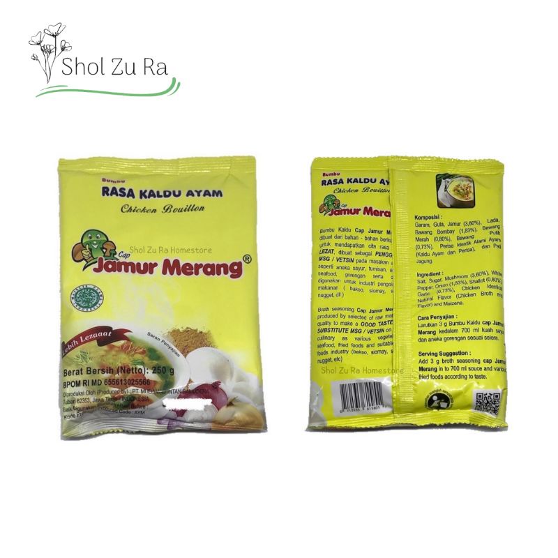 Takaran Pakai: 1 sdt (sendok teh) kaldu ayam Cap Jamur Merang = 1 sdm (sendok makan) penyedap rasa / micin/ vetsin merk lainnya