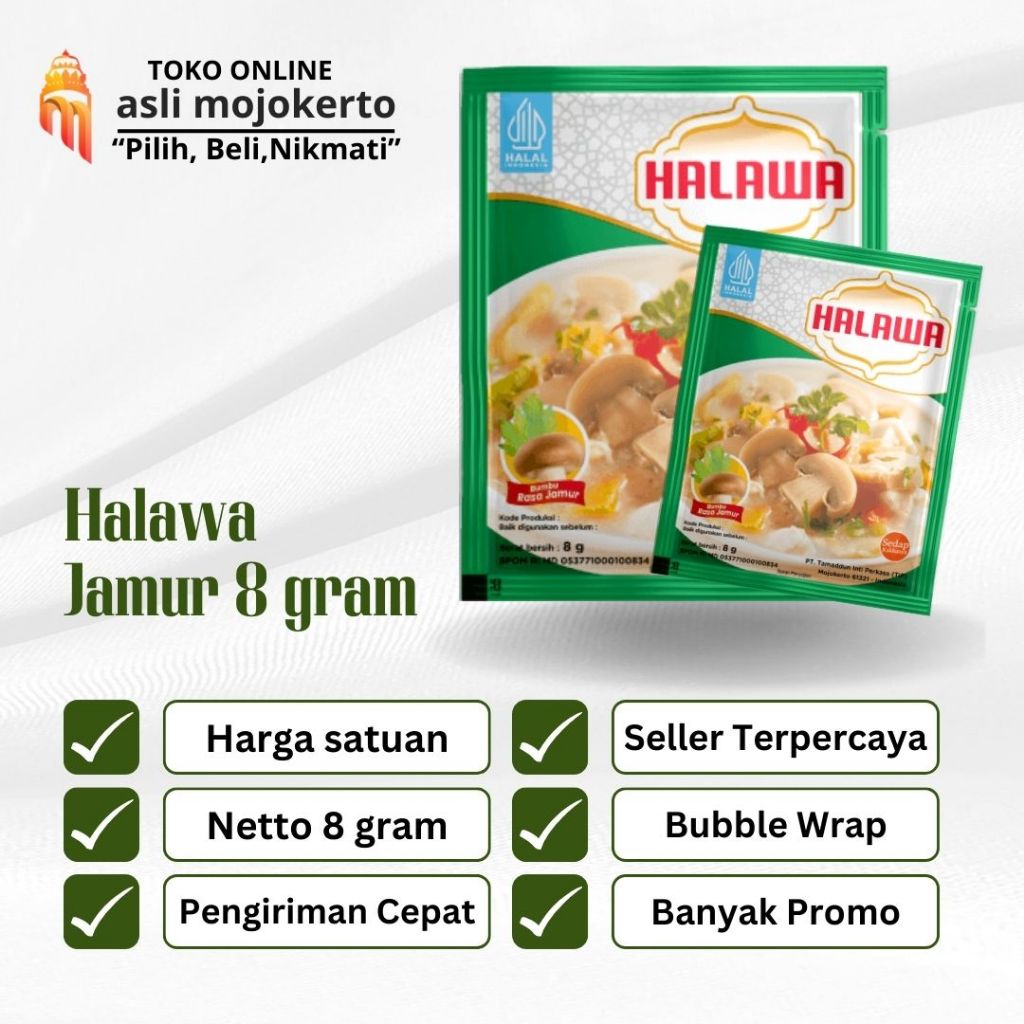 Kaldu rasa jamur halawa, dibuat dengan bahan alami, membuat masakan anda lebih lezat dengan aroma jamur yang harum dan menggugah selesar. Sangat pas untuk bermacam macam jenis masakan seperti tumis, sop, dimsum dan lain-lain
