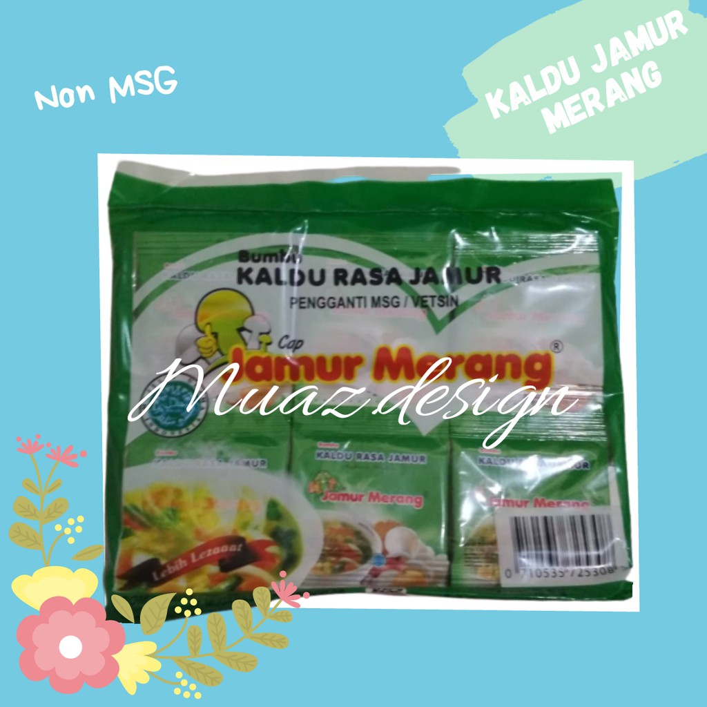 Kaldu Jamur Merang terbuat dari bahan-bahan alami tanpa MSG. 1 pack isi 30 sachet. 1 sachet berat 3gr. 1 dus = 1kg dan 1kg muat 11 pack tanpa dus.