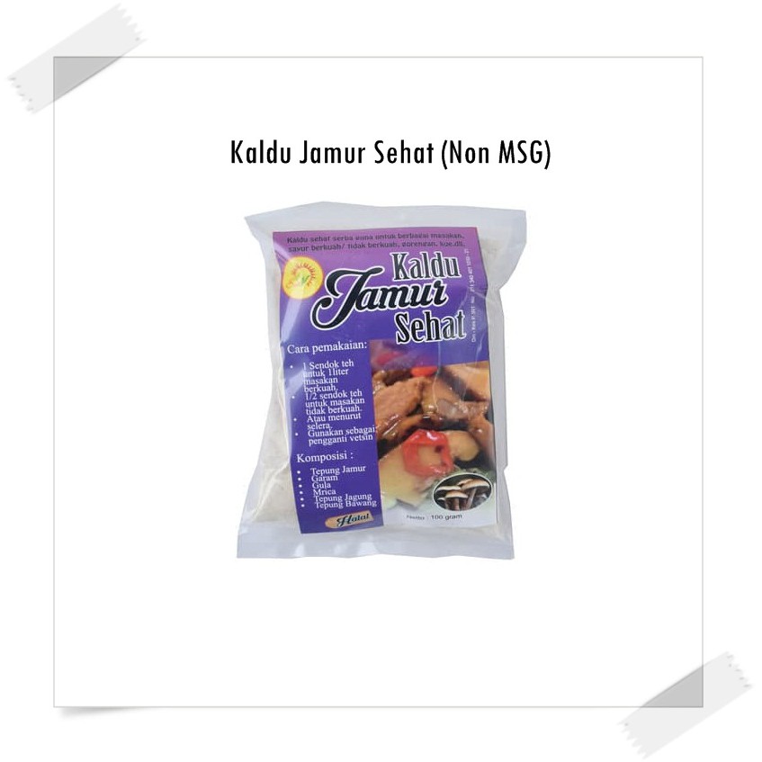 Kaldu Sehat bermerek dagang Sun V berupa bubuk dengan rasa jamur dengan kemasan plastik 100gram. Daya tahan dan perlakuan perawatan kaldu/ bumbu masak ini sama seperti bumbu masak yang lain.