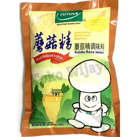 Perbandingan : Kalo kmu pakai vetsin 1 sdm (sendok mkn),dengan jamur totole cukup 1/2 sdm saja sdh yummy, jg dapat diberikan kepada buah hati bunda karena jauh lebih sehat, krn TOTOLE benar2 terbuat dari bahan alami