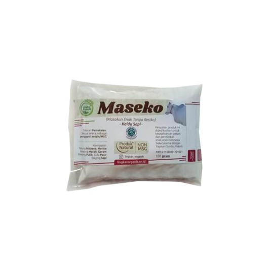 “Maseko Kaldu Sapi dari Lingkar Organik merupakan pilihan alami untuk bumbu-bumbu dalam masakan Anda. Maseko merupakan singkatan dari Masakan Enak Bebas Resiko) di mana hal itu menjadi tujuan dibuatnya bumbu Lingkar Maseko Kaldu Sapi ini memungkinkan Anda dapat menikmati makanannya dengan bumbu alami. Bumbu ini dibuat tanpa bahan 3P (Pengawert, Perasa, dan Pewarna Buatan), bebas MSG, dan non-GMO. Mulailah bumbui masakan terbaik Anda dengan Lingkar Maseko Kaldu Sapi!