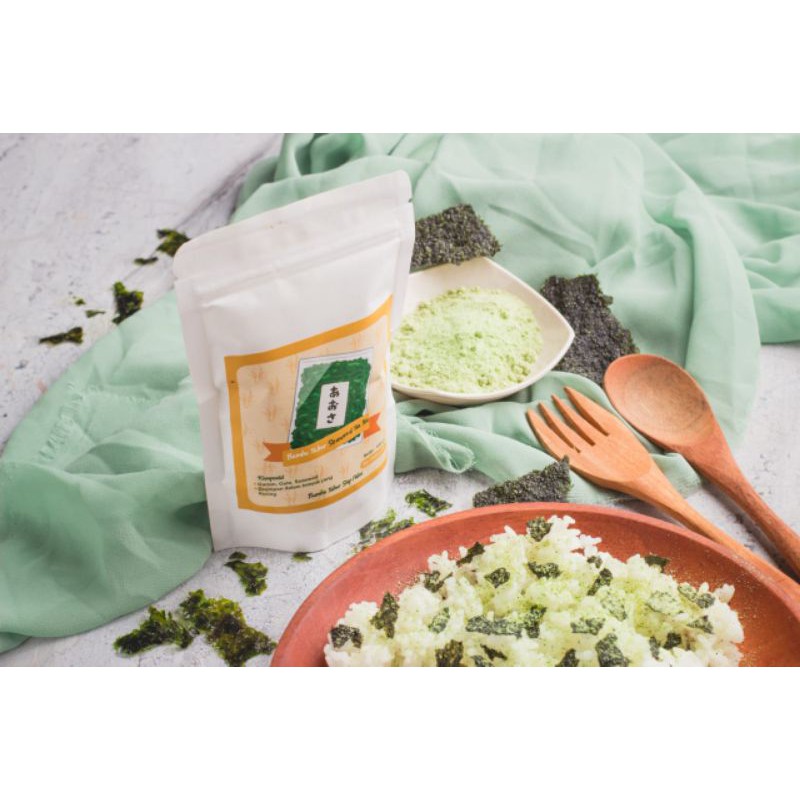 Bahan rumput laut asli, diproses dengan mesin yang modern sehingga terjamin kebersihannya. tanpa campuran tepung, non MSG dan Non Pengawet.