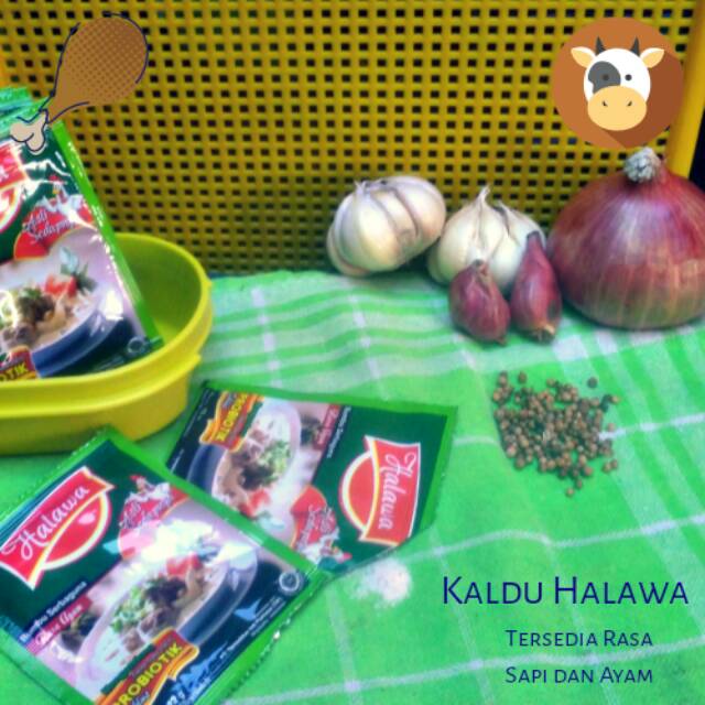 Kaldu halawa non Msg mengandung probiotik dengan 2 varian rasa yaitu rasa ayam dan sapi