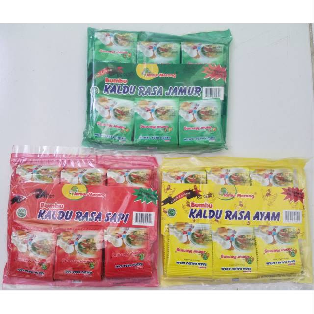 Kaldu jamur merang rasa original, rasa sapi, rasa ayam