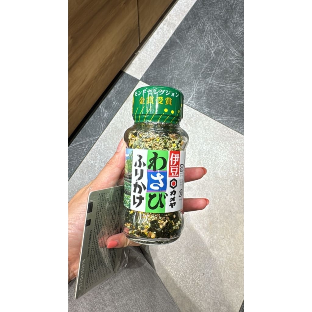 produk ini adalah serpihan bumbu rasa wasabi. Taburkan pada nasi matang dan Anda akan merasakan sensasi pedas wasabi.