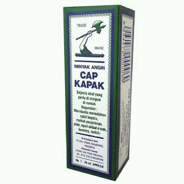 MINYAK ANGIN CAP KAPAK adalah sejenis obat yang perlu disimpan di rumah. Minyak angin ini berkhasiat untuk membantu meredakan sakit kepala, mabuk perjalanan, pilek, nyeri akibat encok, keseleo dan terkilir.