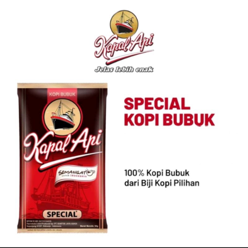 Kopi Kapal Api Special terbuat dari paduan biji kopi berkualitas "Special" menghasilkan aroma dan rasa yang jelas lebih enak, siap memberikan semangat untuk memulai hari.