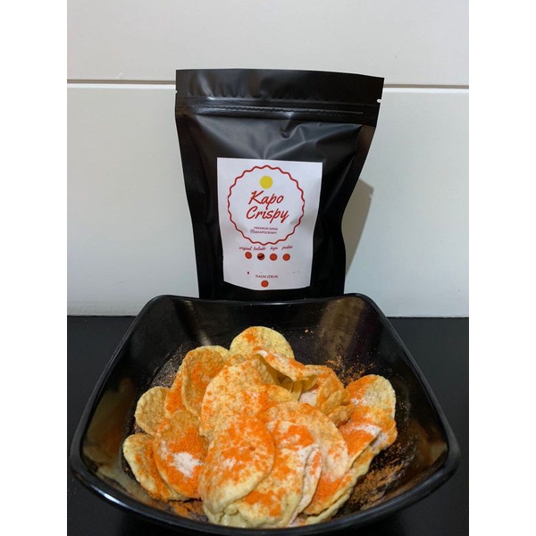 Cemilan Kapo Crispy terbuat dari singkong, dilembutkan dan dicetak berbentuk bulat biasa di sebut Opak, namun kami membuat lebih tipis dan kecil agar Krispy dan gurih dan terdapat banyak varian rasa.