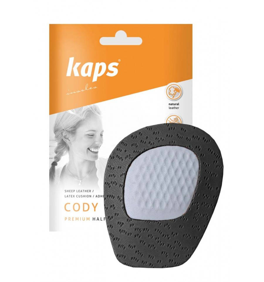 Полустельки Kaps Cody Black – это практичные и удобные изделия чёрного цвета, изготовлены из высококачественной овечьей кожи растительного дубления без РСР. Изделия снижают нагрузки на стопы благодаря наличию латексной подушечки. Самоклеящийся слой хорошо стабилизирует и закрепляет полустельку в обуви.