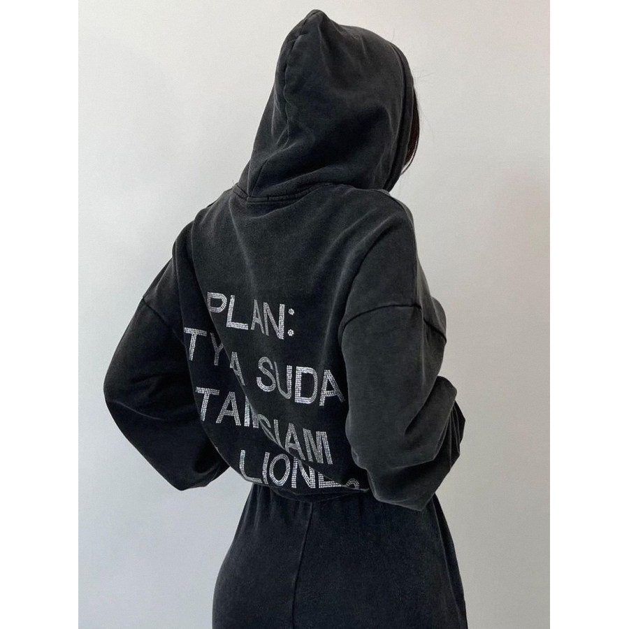 frauen oberteile,kapuzenpullover mit strass-buchstaben-print