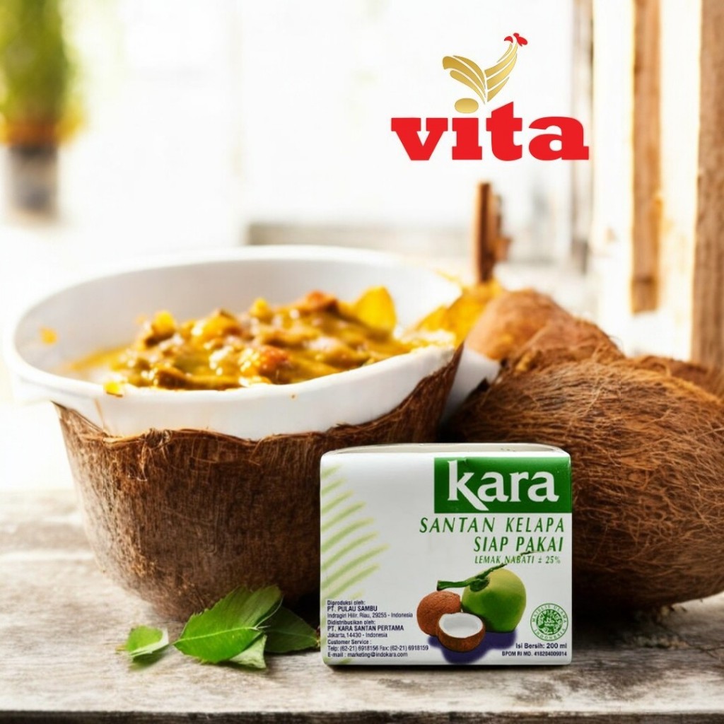 KARA santan diproses secara UHT dan dikemas secara aseptik dalam kemasan yang praktis