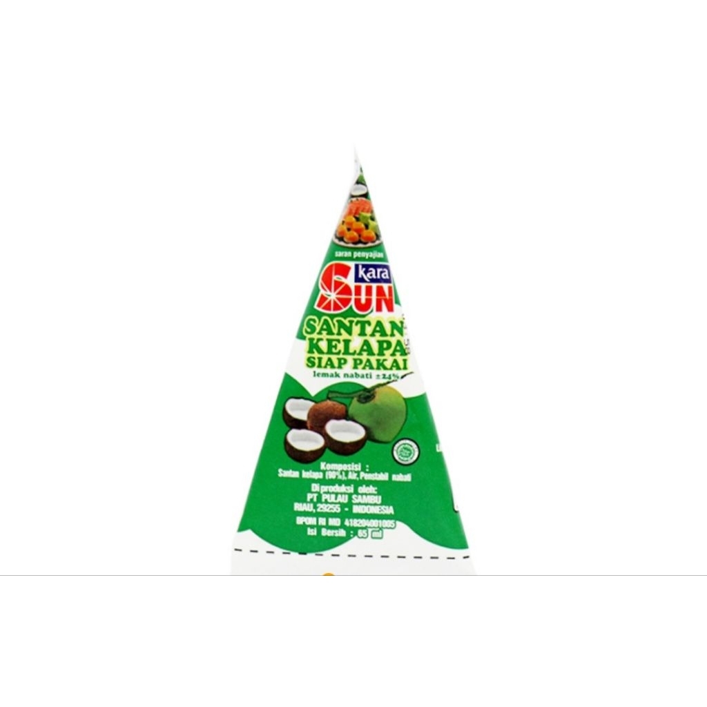 Sun Kara Santan 65ml, dengan teknologi mutakhir, KARA menghadirkan santan yang diproses secara UHT dan dikemas secara aseptik dalam kemasan yang praktis. Produk santan ini telah memenuhi berbagai standar kualitas makanan dengan tetap mempertahankan kesegaran dan rasa alami kelapa.