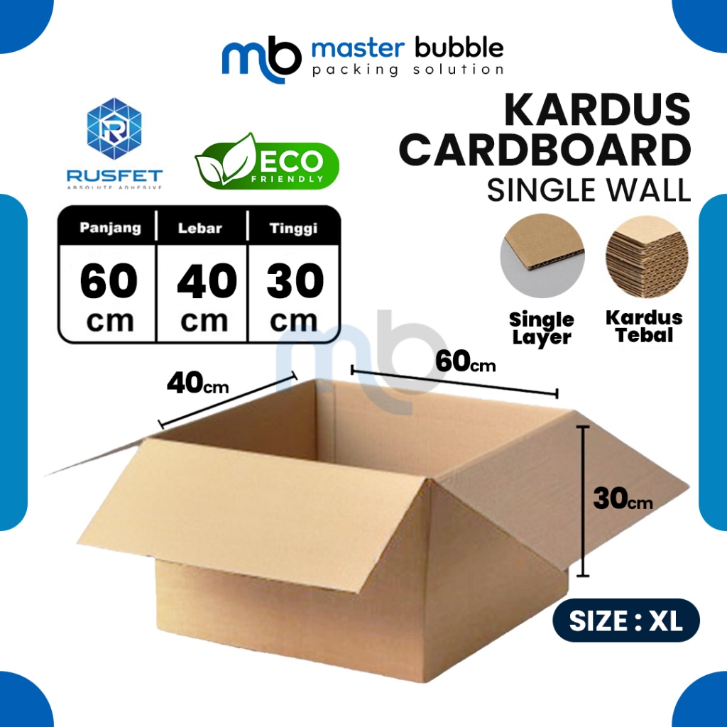 Kardus Packing Dus 60 X 40 X 30 cm Box Cardboard RUSFET Single Layer Coklat Polos Harga Ecer Lembar