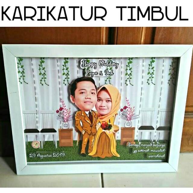 Karikatur timbul, desain untuk wedding bisa request, timbul dalam bingkai, unik dan tahan lama....