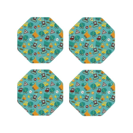 Leather Coasters Set of 4 - Trucks and excavators Lightweight Non-Slip Drink Coasters for Desk Anti-Scalding Desk Cup Coasters for Office Table Decor Octagon