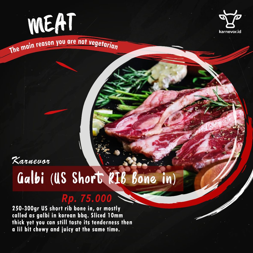 Harga tertera untuk 200-300gr Karnevor Galbi / Iga Sapi / US Short Rib Bone In (kurang lebih 3 potong).