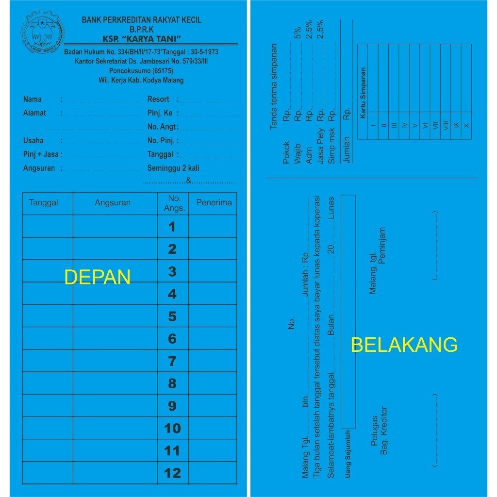 Kartu Angsuran Koperasi / Kartu Pinjaman Koperasi Mingguan Custom