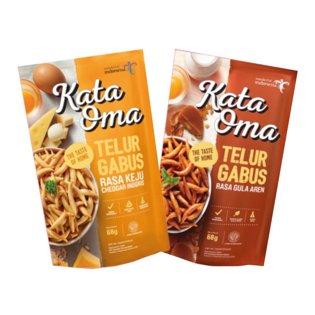 Kata Oma Telur Gabus adalah produk cemilan yang berasal dari resep warisan keluarga Indonesia, dibuat dari bahan alami dan berkualitas, serta dikemas dalam kemasan yang modern. Kata Oma akan membawamu bernostalgia dengan kehangatan keluarga melalui camilan rumah yang #RenyahnyaBikinKangen #TheTasteofHome. Manis alami, tanpa pengawet, tanpa MSG, dan dibuat dengan bahan-bahan pilihan. Tersedia dalam dua pilihan rasa: Gula Aren dan Keju Cheddar Inggris.
