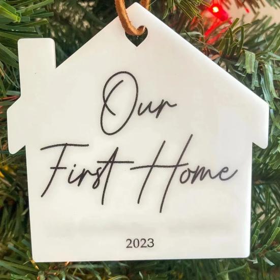 Кулон «Первое Рождество в нашем доме» Двусторонний принт Круглая форма сердца Гладкие висячие благословения Декоративный подарок на новоселье Украшение окна A