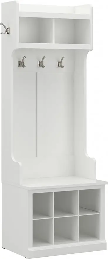Kathy Spain Home by Bush WDL008WAS 69-дюймовая скамейка для хранения обуви и стойка для пальто с 4 полками, белый пепепельный