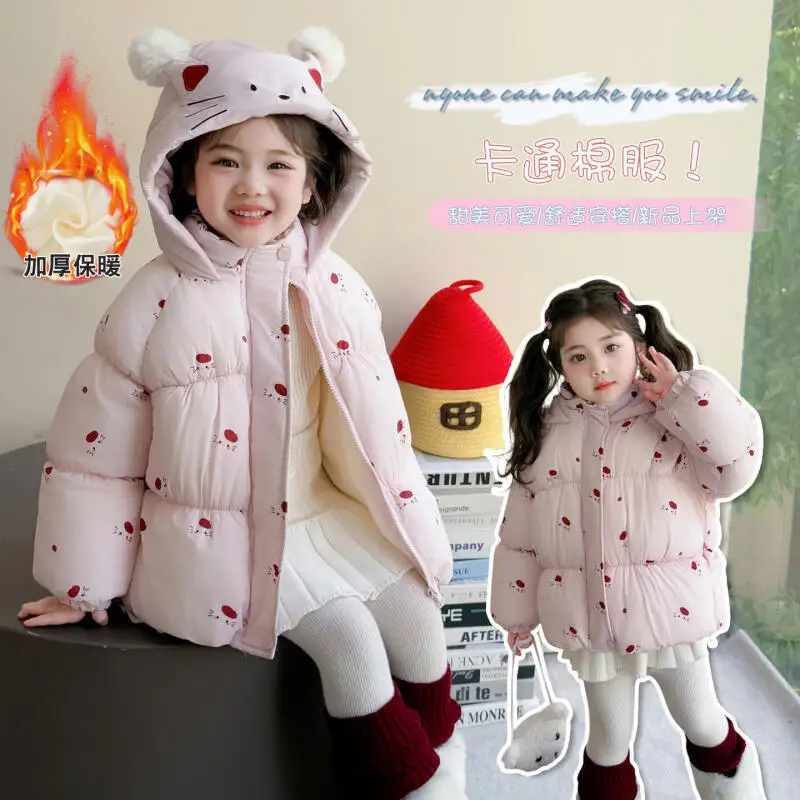 Kawaii плотная хлопковая куртка для девочек Hello Kitty, зима 202, новое теплое пальто в Корейском стиле с героями мультфильмов аниме, модная милая удобная одежда