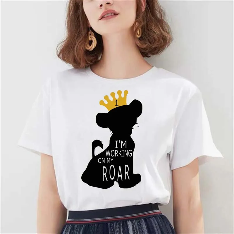 Kawaii Disney мультфильм Hakuna Matata графическая женская футболка 2023 летние детские футболки милые 90-х девушки с коротким рукавом белые топы
