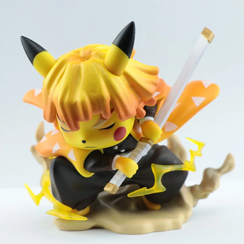 Kawaii Pikachu Косплей демона Slayer Zenitsu Agatsuma ПВХ экшн-Фигурки Коллекционная модель игрушка Коллекционная настольная мебель