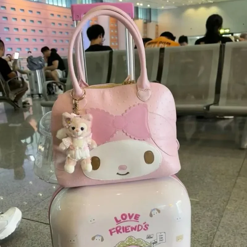 Kawaii Sanrio аниме Моя Мелодия искусственная кожа симпатичная мультяшная сумка на молнии Бант Милая Большая вместительная сумка через плечо для девочек