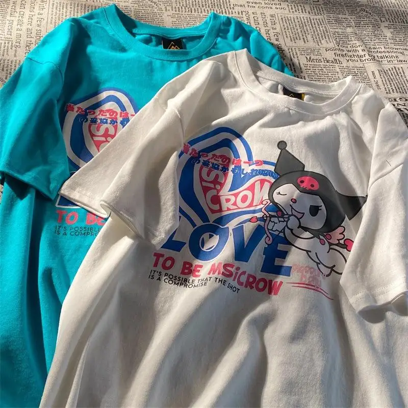 Kawaii Sanrio плюшевый мультяшный милый кот Kuromi плюшевый в стиле Харадзюку Японский милый и крутой с коротким рукавом аниме плюшевый подарок на день рождения