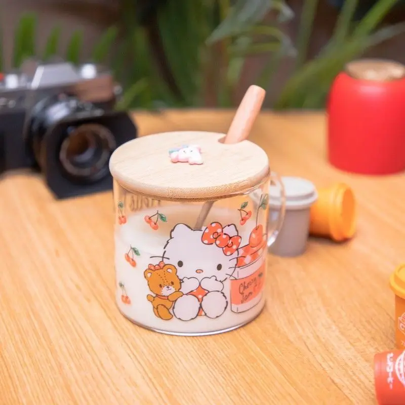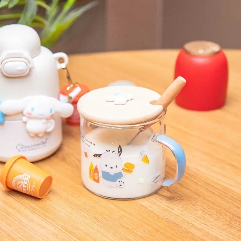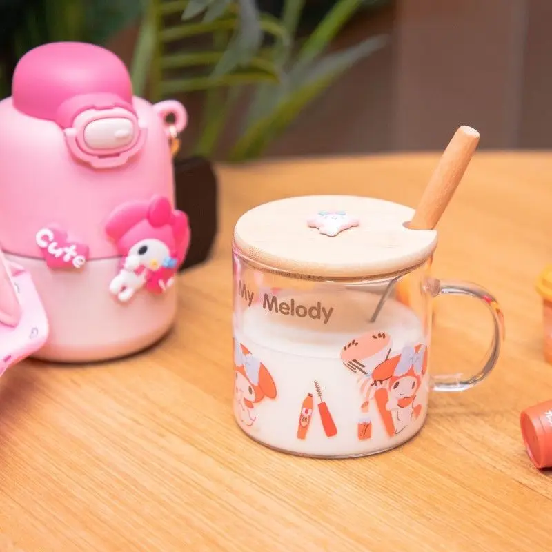 Kawaii Sanriod аниме хобби My Melody Kuromi Cinnamoroll боросиликатная стеклянная чашка с ручкой чашка с трубочкой для питья для детей чашка