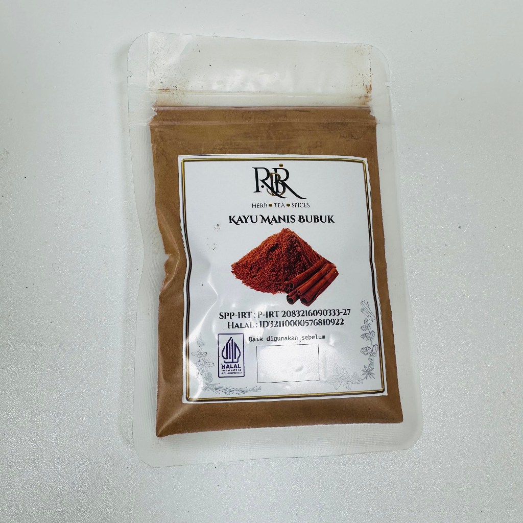 Kayu Manis Bubuk - 50 Gram atau 100 Gram - RBR Official adalah rempah-rempah berkualitas tinggi dari Indonesia. Dikemas dalam wadah yang mudah disimpan di lemari, produk ini memiliki umur simpan selama 12 bulan.