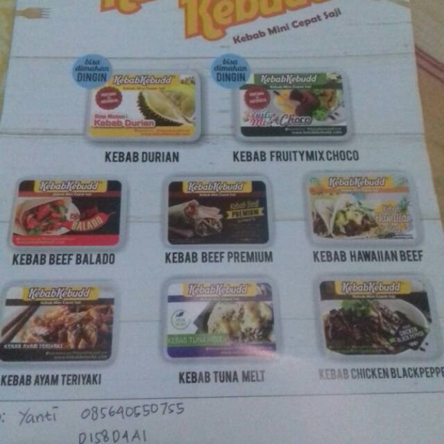 Kebab cepat saji dengan banyak pilihan rasa. Cara makan cukup d panaskan d atas teflon tanpa minyak/margarin 5-10 menit.