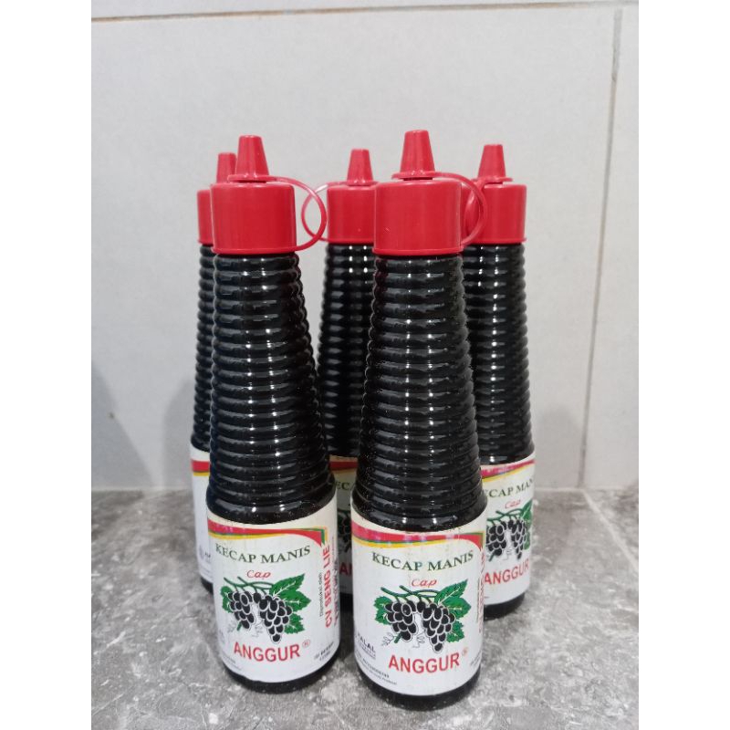 Kecap manis cap anggur , kemasan botol plastik isi 135 ml , kecap manis khas yang banyak digunakan pedagang baso tahu , batagor dan bakmie / yamien di kota Bandung. Mempunyai kekentalan dan aroma yg Enak.
