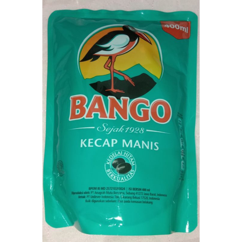 Kecap Bango kemasan pouch dengan berat bersih 400 ml.