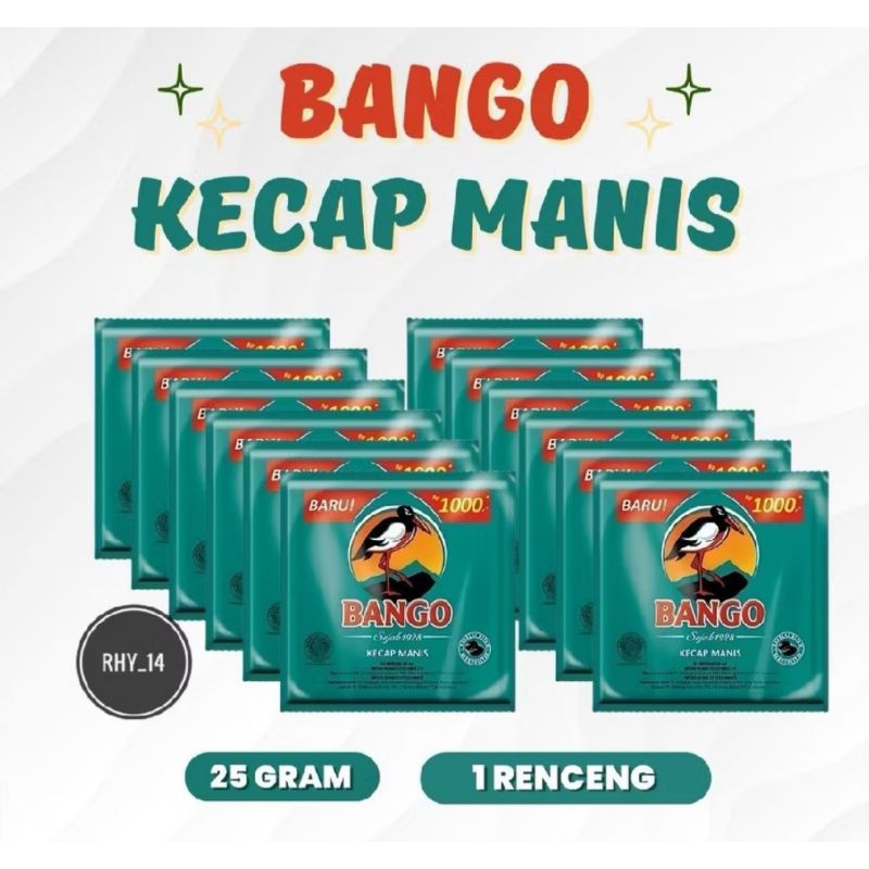 Kemasan: Renteng kecap Bango biasanya berisi 12 atau 24 sachet kecil kecap manis Bango.
